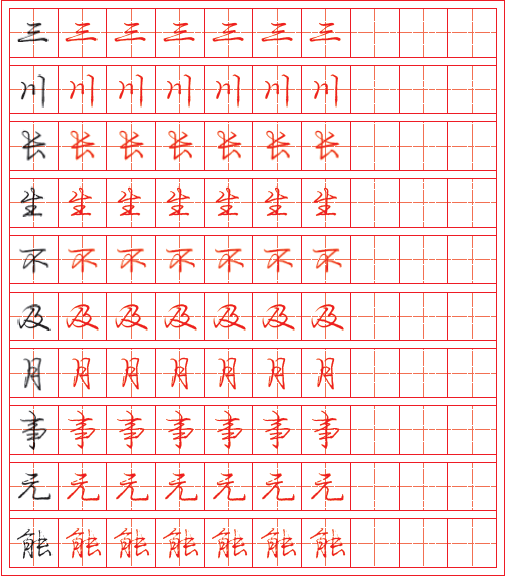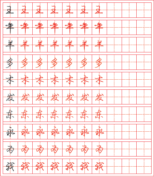 通过描红练习,帮助学生掌握硬笔行书的笔画特点、间架结构的布局方法,能够正确书写硬笔行书的代表字形。