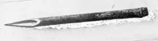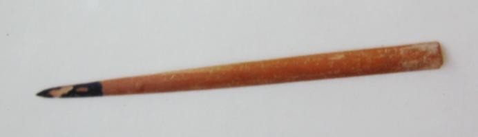 单尖苇管笔:此笔是新疆维吾尔自治区考古工作队在吐鲁番唐代遗址中发掘出土的。见新疆维吾尔自治区博物馆编《新疆出土文物》(北京文物出版社,1975年版)出土时,笔尖已折断。