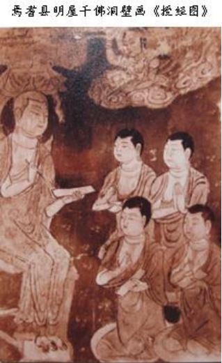 斯坦因在新疆焉耆县明屋千佛洞发掘出土八世纪后期壁画《授经图》