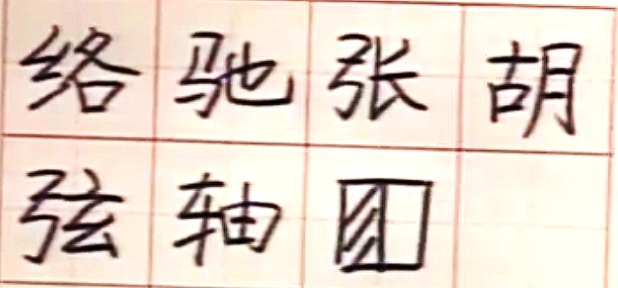 书法里各种偏旁,中线要垂直,两个部分交汇处要很好地结合。