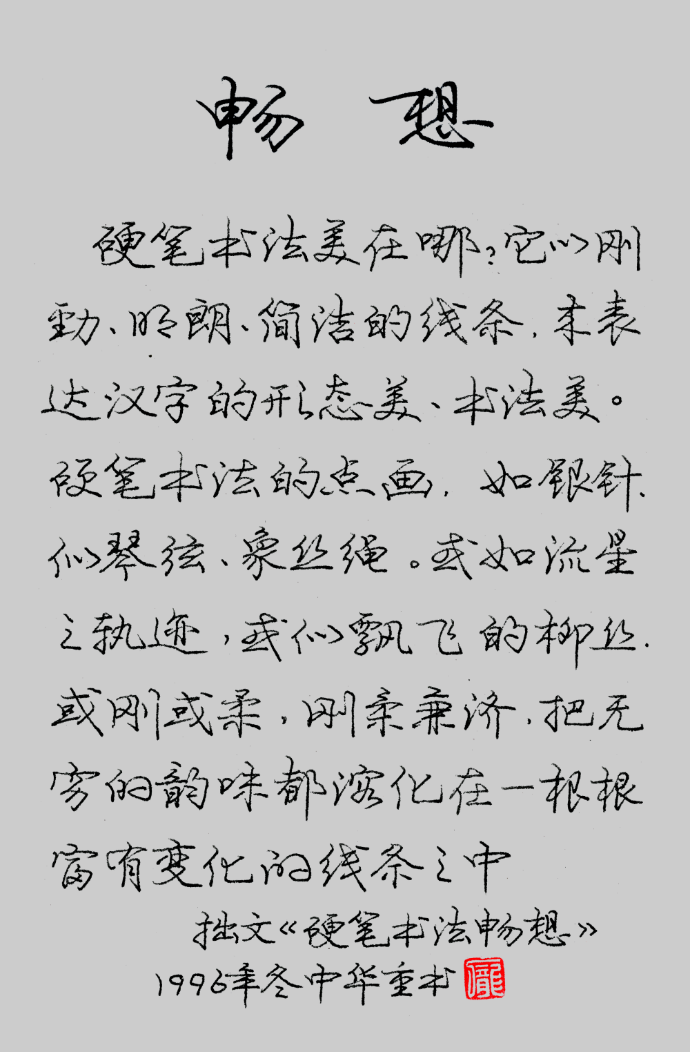 毛笔的肉与硬笔的骨相结合,
